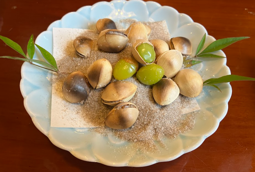 甘味 — 火を入れると、栗にも似た優しい甘味が広がる。「一粒で美人気分になれるの」と女将さんは微笑む。